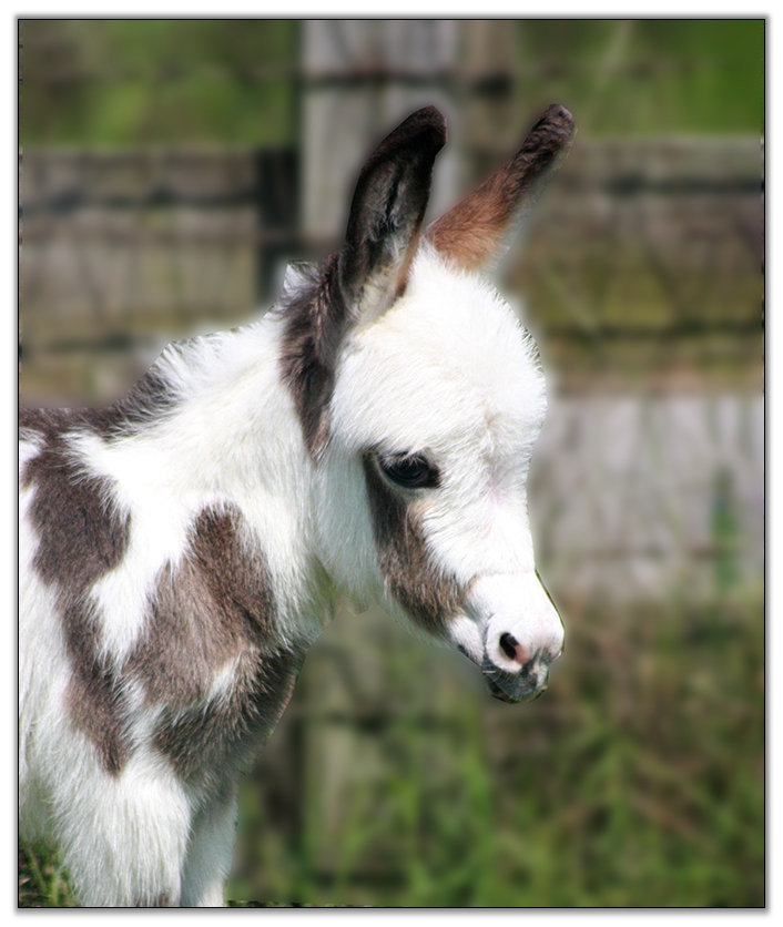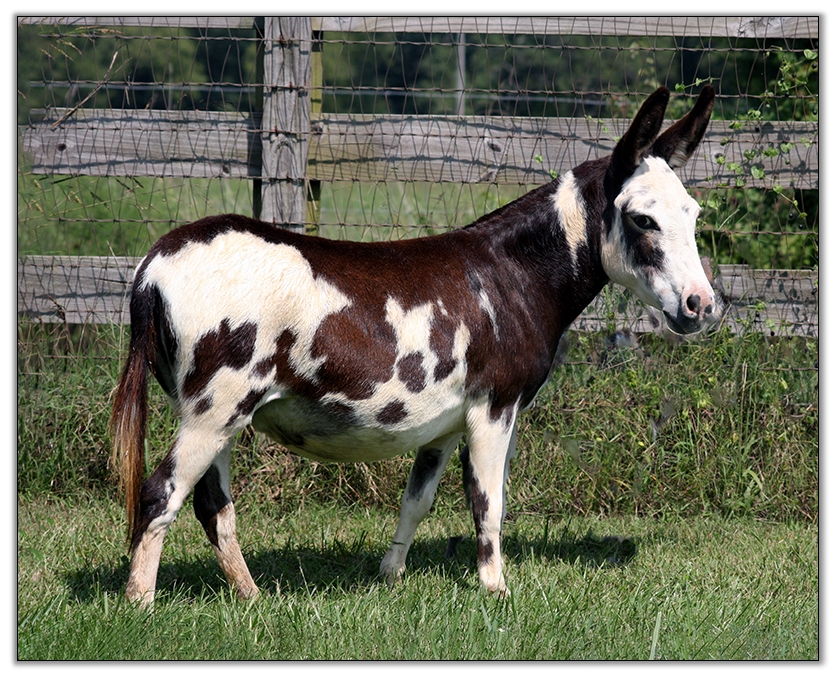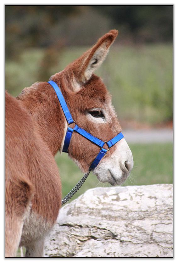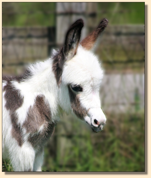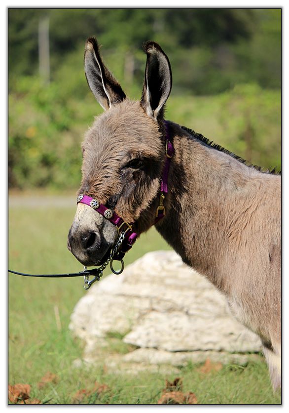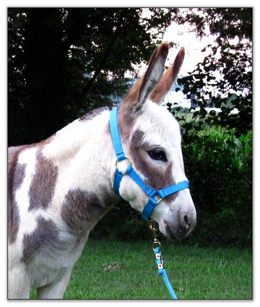 He has not been registered but I am applying for his registration to the American Donkey & Jackstock Registry. He will also be registered with ACOSA (American Council of Spotted Asses). He has been microchiped. Klaus will be able to compete in any National Miniature Donkey Show and/or American Council of Spotted Asses classes as well.