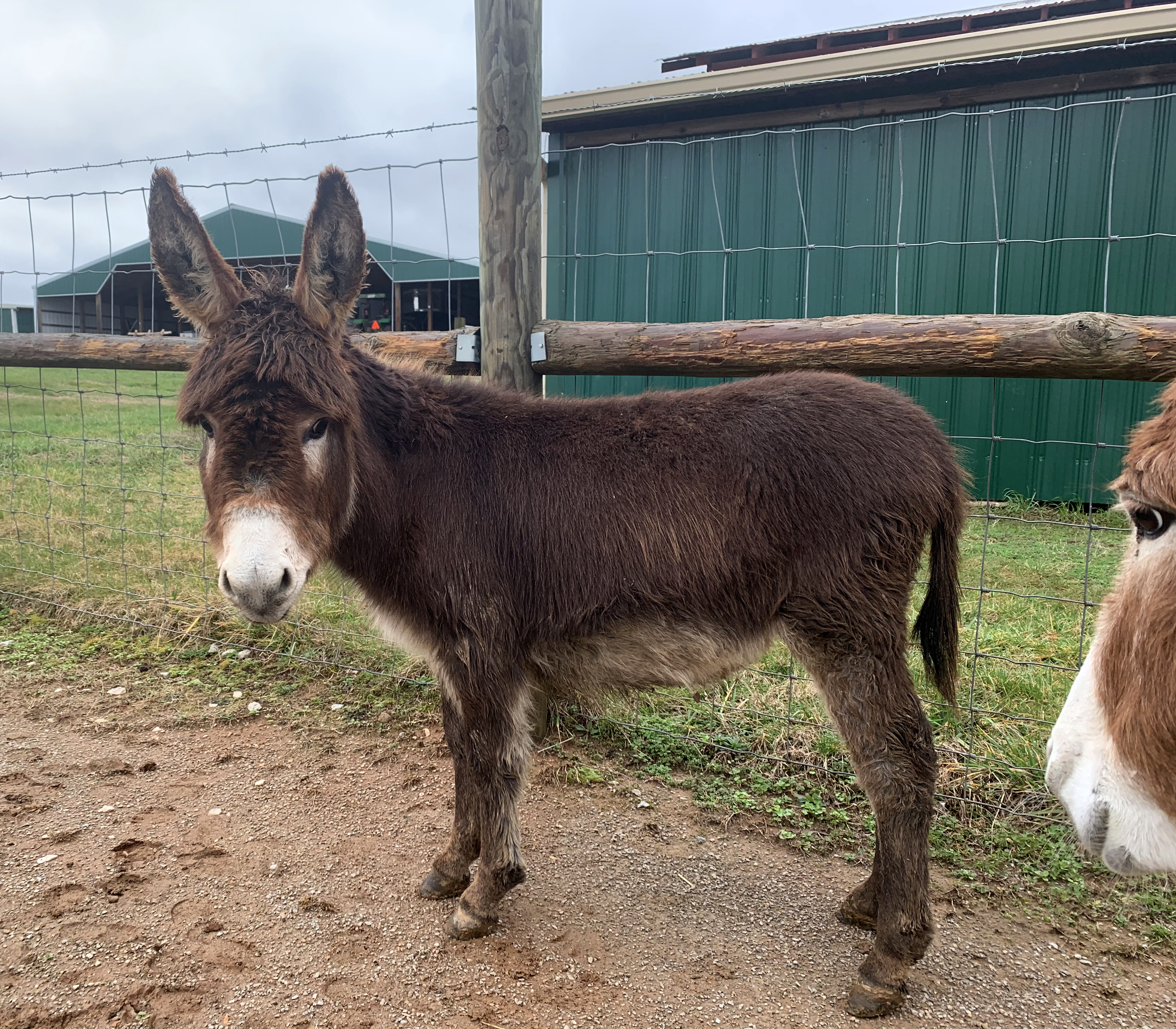Buddy was sold in 2005 to a very nice lady that has owned him for over 15 years. She just returned Buddy in December of 2019 as she was going through a divorce and had sold her farm. We have gladly welcomed Buddy back into our home. His previous owner hated to see him go but she had no other choice. She said it was the best money she ever spent when she purchased Buddy. Buddy is as sweet as ever. Buddy will remain here to live out his life unless I can find him a two-donkey (or one horse) home where he will get more attention than he does here due to our being responsible for so many donkeys. Buddy is up to date on the following vaccinations: Eastern/Western Encephalitis, Tetanus, Rhino, Influenza, West Nile and Rabies. He is regularly de-wormed and he just had his hooves trimmed by a professional farrier.  Buddy gets along with all animals and people.